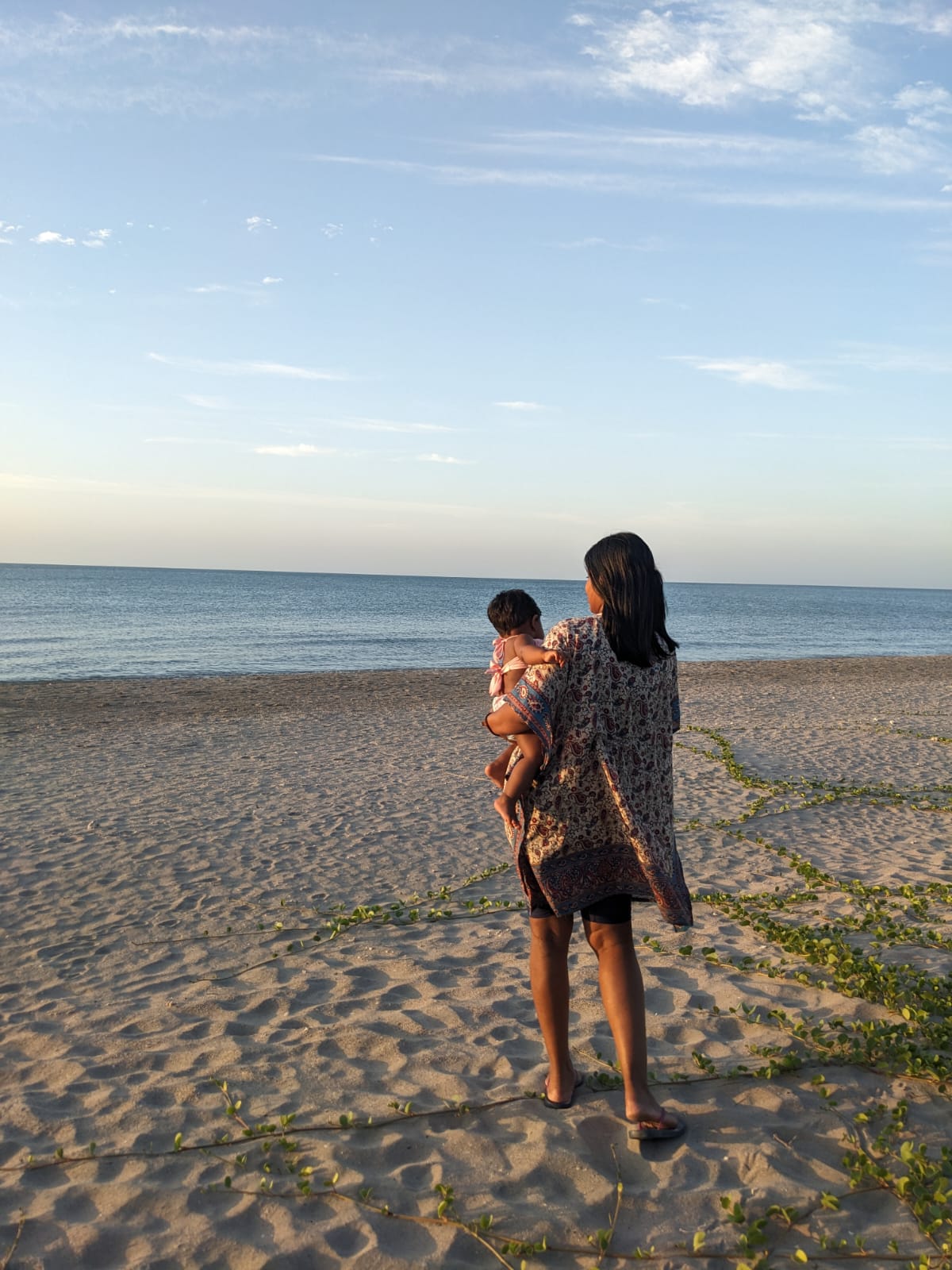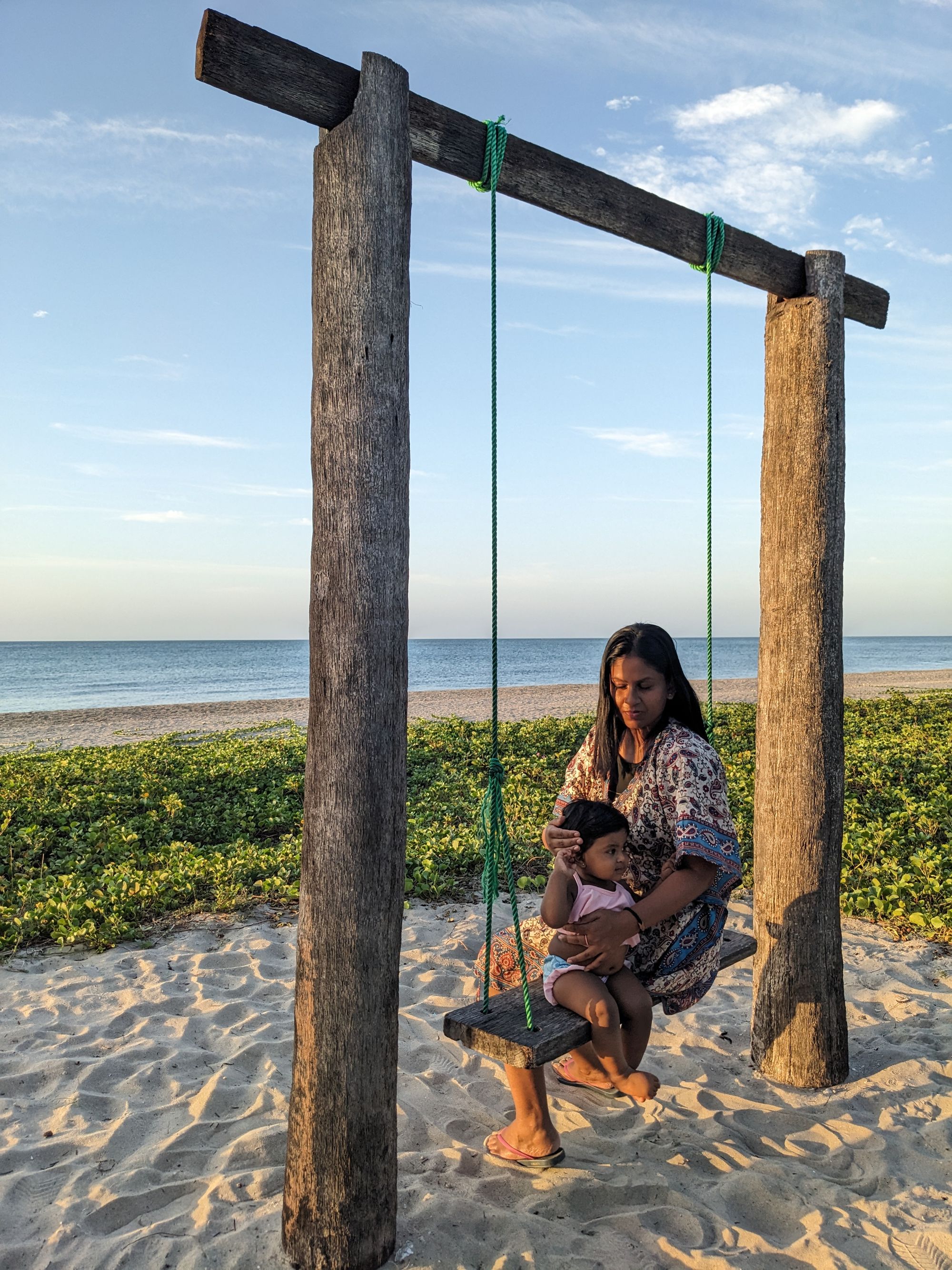 The beach itself was calm and inviting. During the daytime, the weather in Jaffna was extremely hot, so we avoided going into the water under the strong sun. But by evening, once the heat eased off, we headed to the beach as a family. The sea was lovely, and all three of us — myself, my wife, and our little daughter — really enjoyed that time in the water together. Since we now travel as a family with our daughter joining our adventures too, moments like these feel even more special.